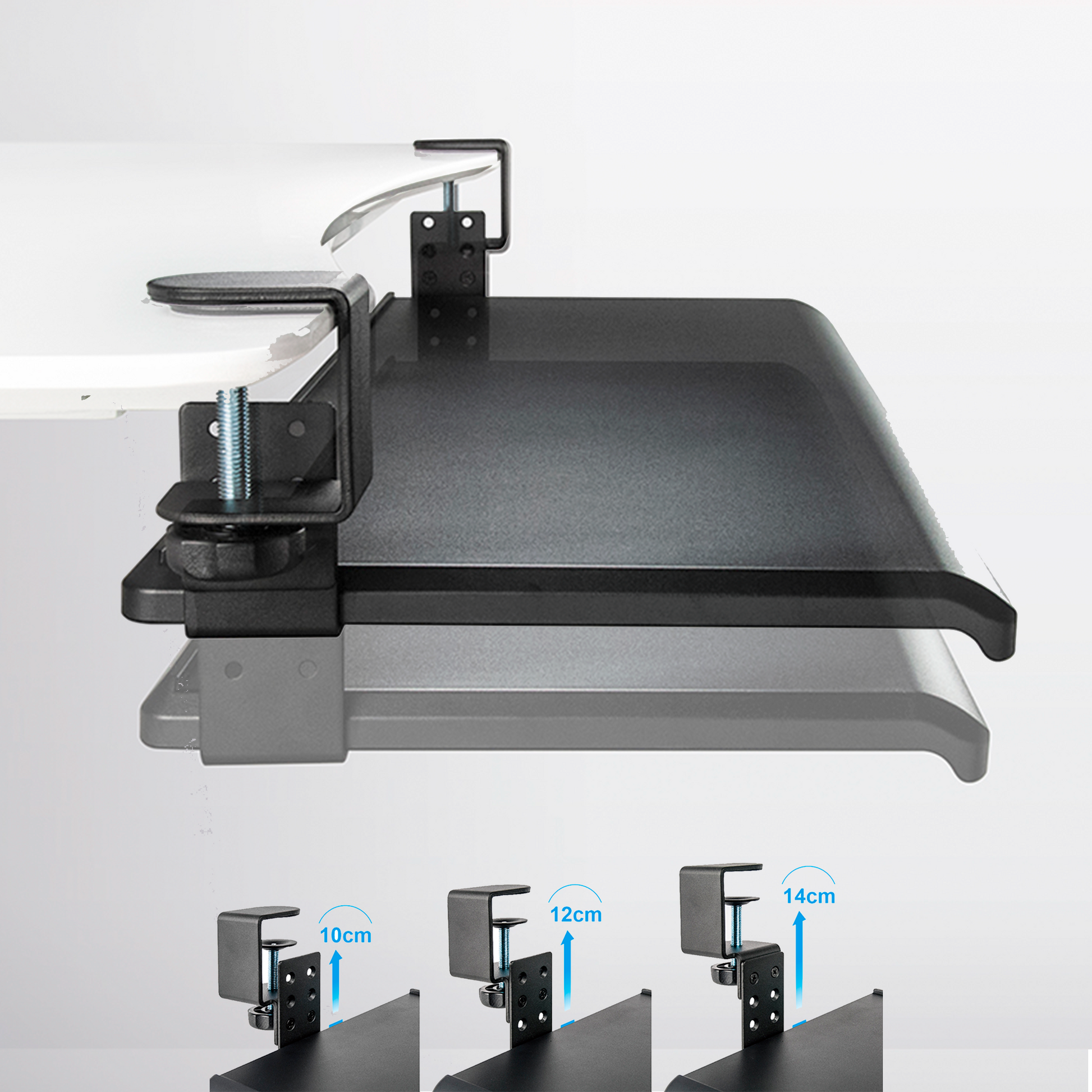 - Abrazadera metálica resistente, compatible con escritorios de hasta 40 mm de espesor.