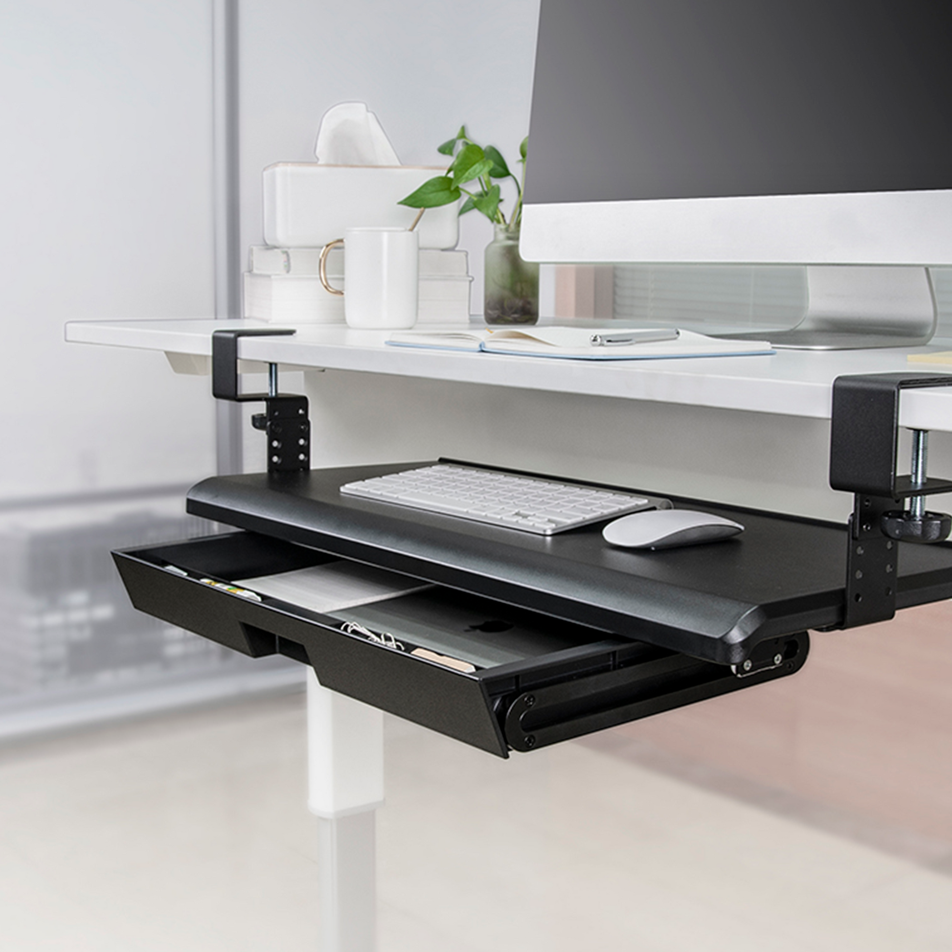 - La bandeja para teclado y el cajón se deslizan de forma independiente.