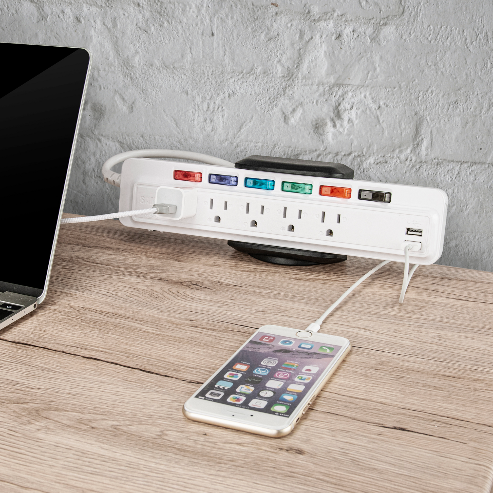 Incorpora almohadillas de goma que evitan rayaduras y mantienen la regleta firmemente en su lugar. Además, su diseño favorece una correcta gestión de cables, ayudando a reducir el desorden y optimizando el área de trabajo para una experiencia más eficiente y profesional.