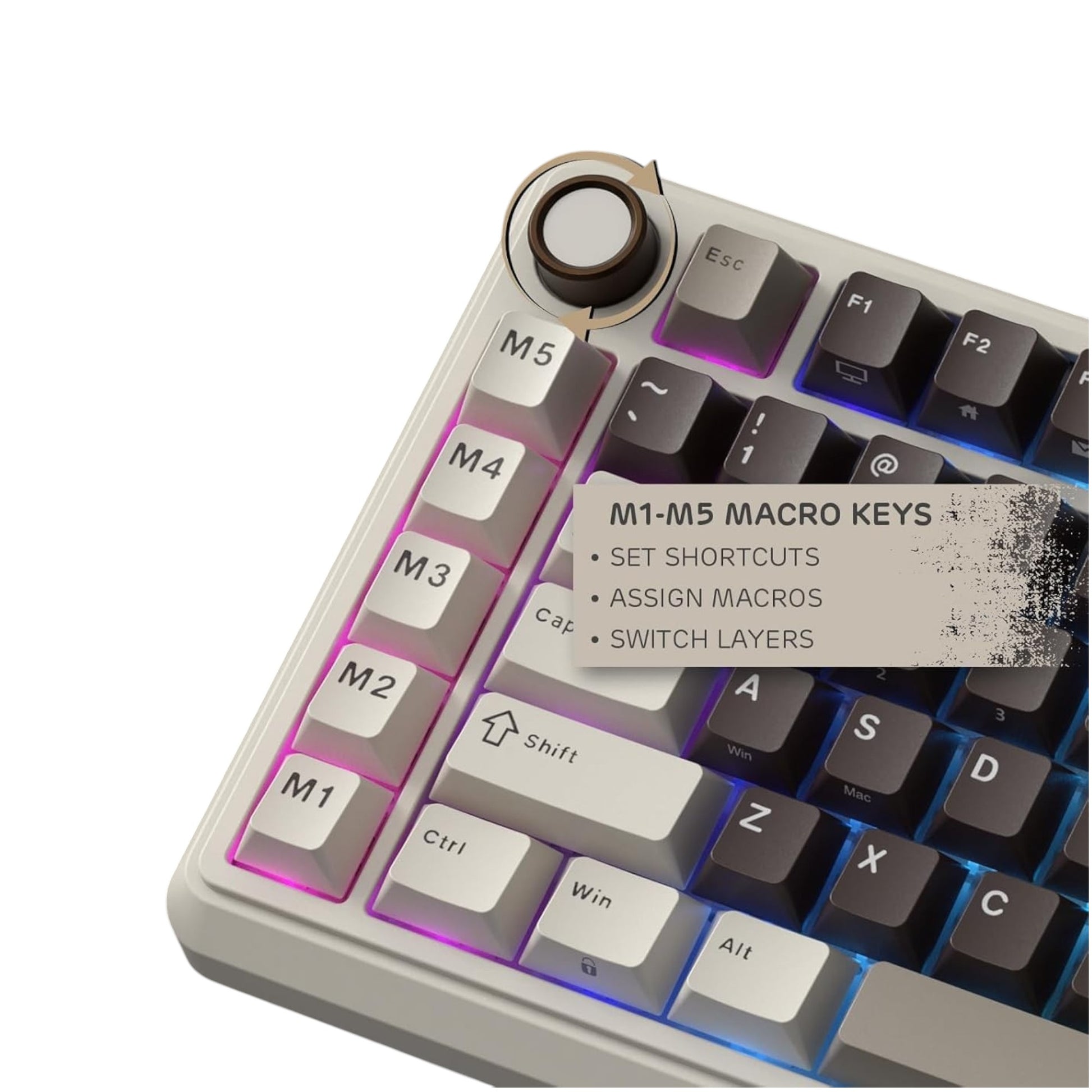 - Teclas macro: 5 teclas programables (M1 a M5)